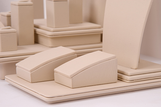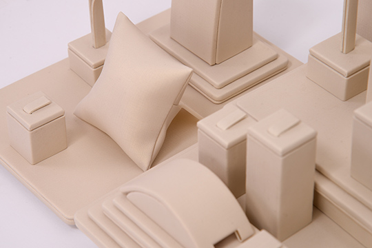 A coleção Expositor Fancy foi desenvolvida para criar um cenário de elegância e suavidade, ideal para destacar a beleza de suas peças mais delicadas. Com um design coeso e minimalista, cada elemento é revestido em tecido, garantindo que o foco permaneça totalmente na joia.